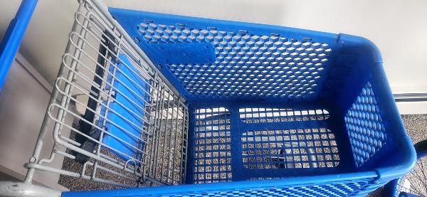Standard size blue color shopping cart for multipurpose usage. Immediate move out sale. Size : W X L X H - 22×38×41"