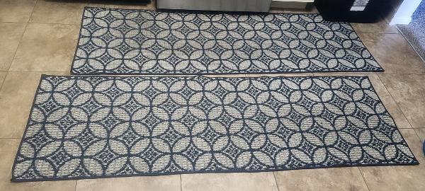 Set of two rugs with beautiful pattern, anti skit, in a good condition. Perfect for kitchen, hall area, dining area entry area of house. Immediate move out sale.  Must go by Nov mid.